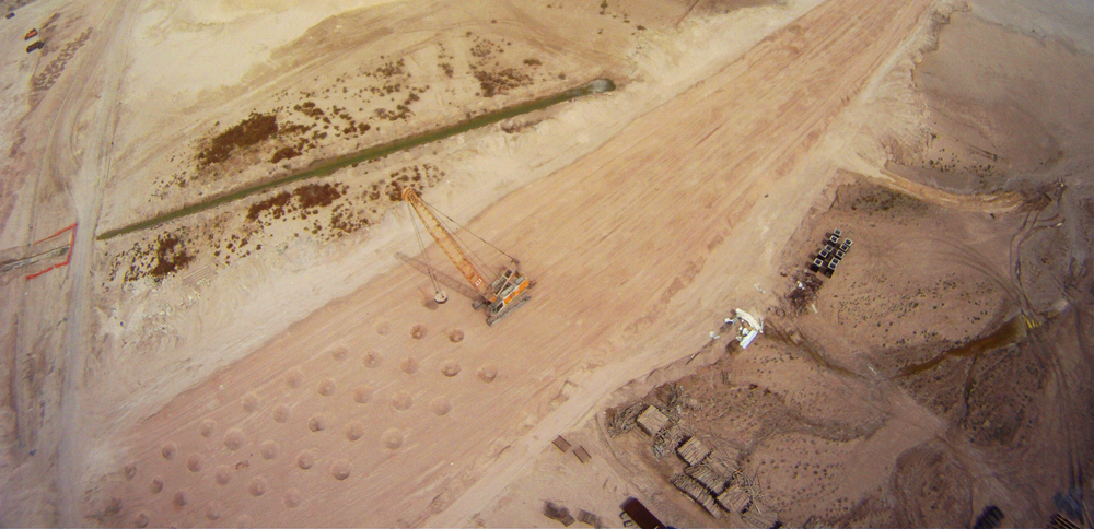 The state of Kuwait through the Public Authorities of Housing and Welfare developed new districts in the suburbs of Kuwait city to provide its citizens with housing and new facilities. Menard undertook the ground improvement works of the whole area of Jaaber Al Ahmed and Northwest Suleibikhat cities for a total area of approximately 12,000,000 m². The dynamic compaction and dynamic replacement methods were used as an alternative to a full replacement of the natural soil, therefore gaining 12 months on the initial project planning.